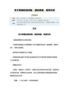 关于青春的演讲稿:激扬青春,畅想未来(激扬青春
